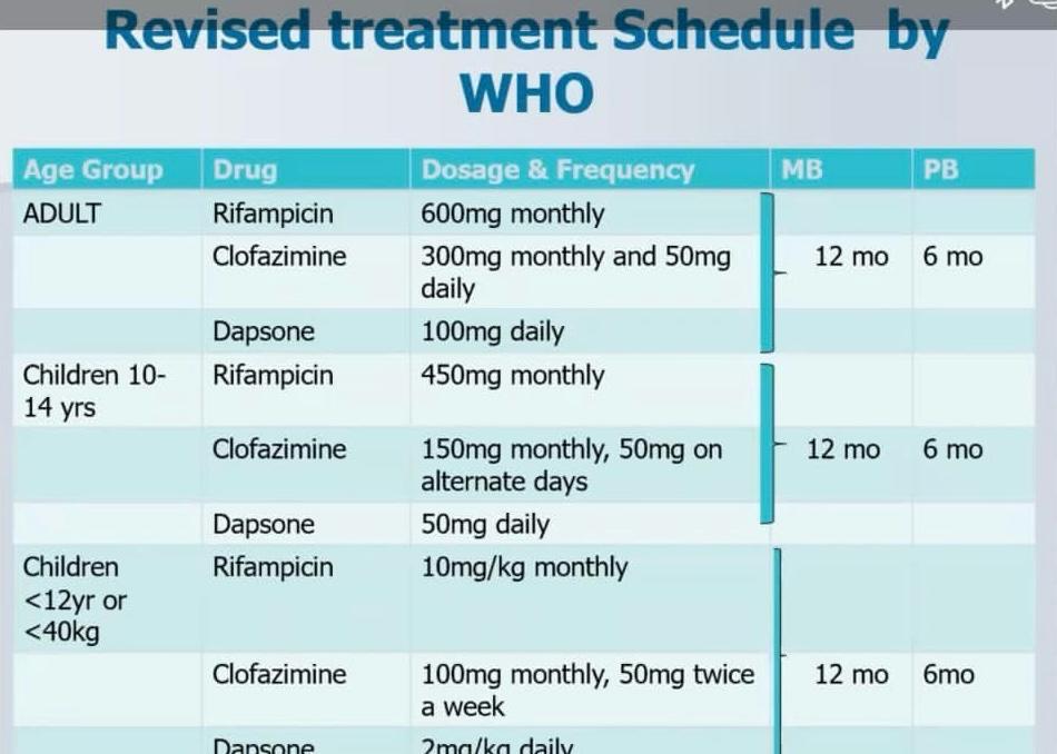 Treatment plan is the same as mentioned earlier, juz given in a tabulated form.